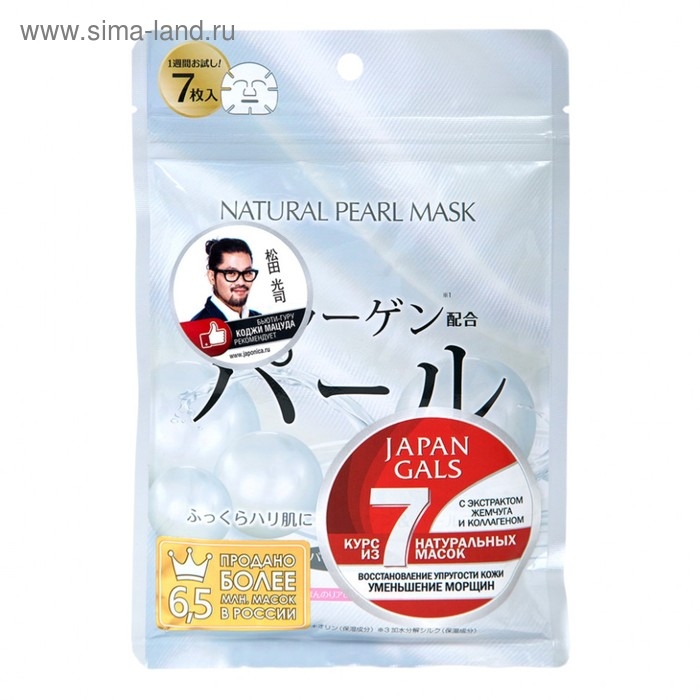 Маска натуральная для лица JAPAN GALS с экстрактом жемчуга, 7 шт