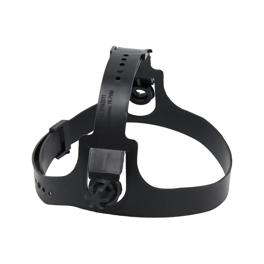 Щиток снабжен наголовным креплением, которое отливается из ПВД на литьевых станках целиком, без каких либо стыков. Наголовное крепление обеспечивает пределы регулирования охвата головы и крепится к корпусу гайко-барашками с помощью фиксаторов, которые обеспечивают перемещение и фиксацию корпуса из закрытого положения в открытое и обратно без усилий. Наголовное крепление по отношению к корпусу имеет три положения для фиксации, что дает возможность сварщику собирать щиток по своему индивидуальному размеру головы.