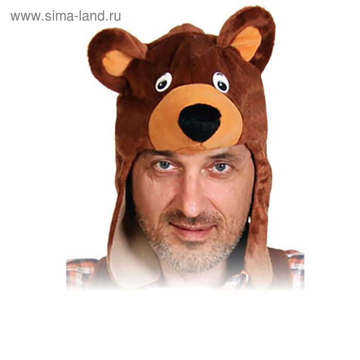 Маска взрослая "Мишка бурый" с ушами, плюш, р-р 55-58