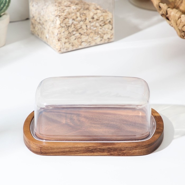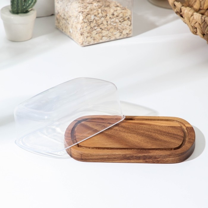Маслёнка с крышкой, 17×11×9 см, акация