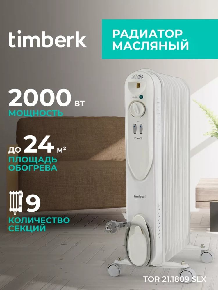 Масляный обогреватель для дома - радиатор 9 секций, 2000 Вт