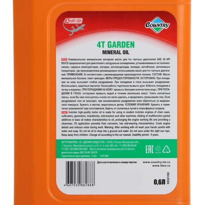 Масло четырехтактное Country минеральное SAE 30 SG/CD, 0.6 л