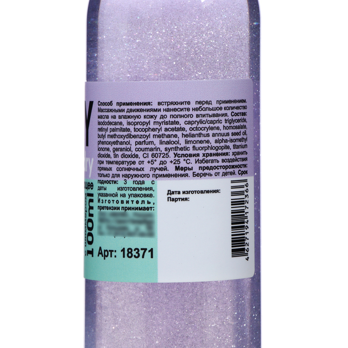 Масло для тела Milv Marshmallow, сухое парфюмированное, с шиммером, 100 мл