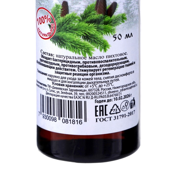 Масло пихтовое Дивеевская здравница, 50 мл
