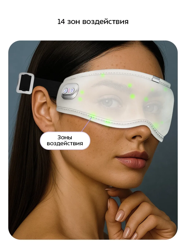 Прибор воздействует двумя способами: вибрацией и нагревом. Вибрационный массаж способствует расслаблению глазных мышц и снятию спазмов и зажимов, а также уменьшению отеков под глазами. Нагрев усиливает эффект от массажа, а также способствует улучшению кровообращения и обменных процессов. Данный массажер имеет два уровня нагрева: на первом уровне нагрева температура равна 40 °C, на втором –– 42 °C.