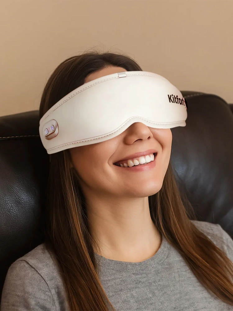Массажер для глаз Kitfort KT-5934 помогает избавиться от неприятных ощущений после повышенной зрительной нагрузки, снять усталость и способствует расслаблению мышц вокруг глаз. Также массажер способствует снятию отеков и тонизированию кожи вокруг глаз.