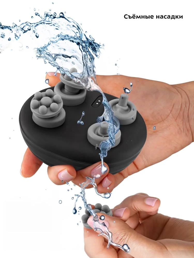 У массажера 5 режимов работы, в которых 4 рабочих механизма совершают различные круговые движения с разной интенсивностью. В комплекте поставляется два вида насадок: с закругленными и заостренными концами. Благодаря этому каждый сможет подобрать наиболее комфортный массаж для любого участка тела.