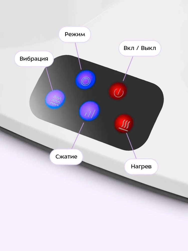 Прибор сжимает стопы, создавая эффект компрессии, происходит вибрация, массажные ролики воздействуют на акупунктурные точки, при этом осуществляется нагрев.