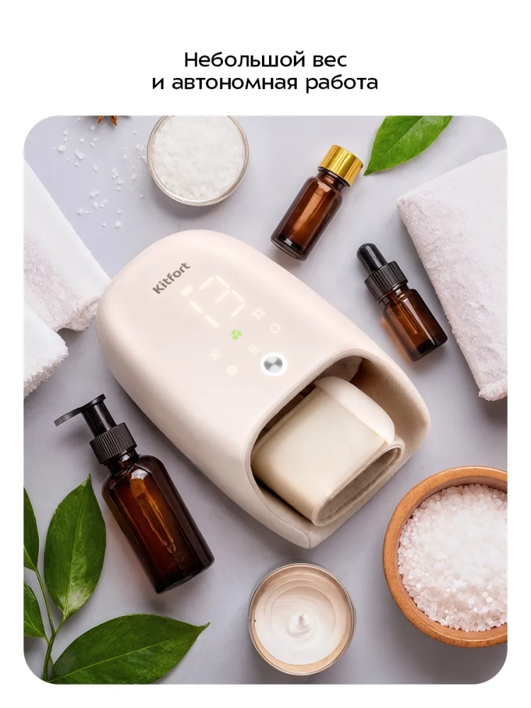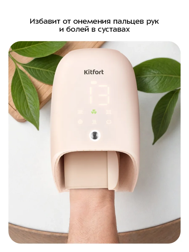 Массажер для рук Kitfort КТ-5956 помогает снять напряжение в кистях и запястьях, снизить усталость и болевые ощущения в руках, а также может согреть или охладить ваши ладони, уменьшить онемение или отек пальцев рук. Данное устройство улучшает кровообращение и способствует сохранению красоты и молодости ваших рук. Массажер для рук будет особенно полезен тем, кто занимается длительной механической работой и подвергает руки высокой или длительной монотонной нагрузке, например офисным сотрудникам, музыкантам или домохозяйкам.