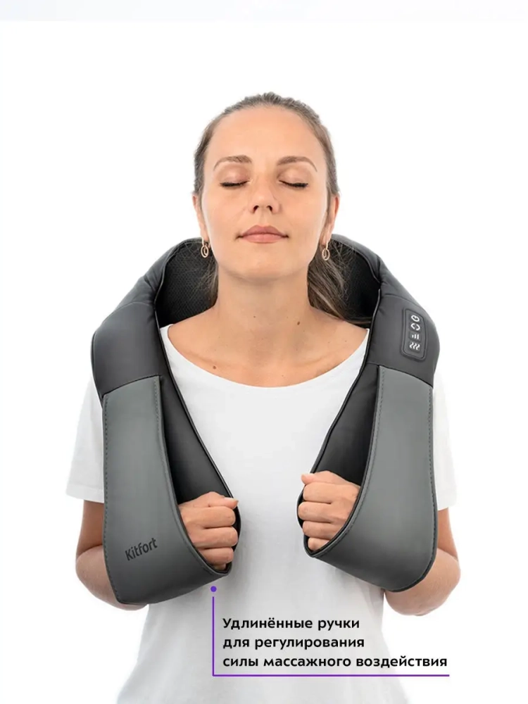 Электромассажер Kitfort KT-2905 поможет избавиться от дискомфорта в шейно-плечевом отделе, который может возникнуть после долгого сидения за компьютером, неудобной позы во время сна или тем, у кого сидячий образ жизни. Воздействуя на шею, позвоночник и плечи массажными роликами, электромассажер устраняет стресс и затекание мышц. Также устройство можно использовать для массажа поясницы, живота, бедер и стоп. Три скорости разминающего массажа, а также выбор направления вращения роликов обеспечат максимальный комфорт. У электромассажера есть функция инфракрасного прогрева, а также таймер с автоотключением после 15-минутного сеанса. Функция инфракрасного прогрева улучшает кровообращение и лимфоотток, тем самым повышая эффективность массажа. Силу массажного воздействия можно регулировать с помощью удлиненных ручек. Электромассажером Китфорт КТ-2905 можно пользоваться в автомобиле, подключив его к адаптеру в прикуривателе.