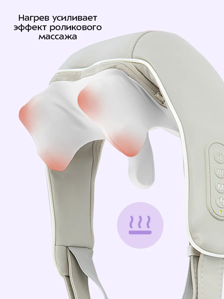Благодаря нагреву эффективность массажа повышается и достигается лучшее расслабление мышц шеи. Такой массажер отлично подойдет для тех, кто долго работает за компьютером или часто испытывает дискомфорт и усталость в области шеи. Роликовый массаж и тепло стимулируют и повышают тонус мышц шеи, расслабляют и снимают усталость, напряжение и болевые ощущения, а также улучшают циркуляцию крови. Также массажер имеет два уровня интенсивности массажа: низкий и высокий.