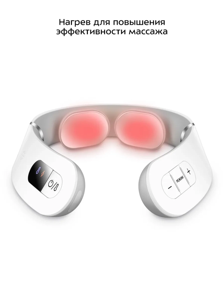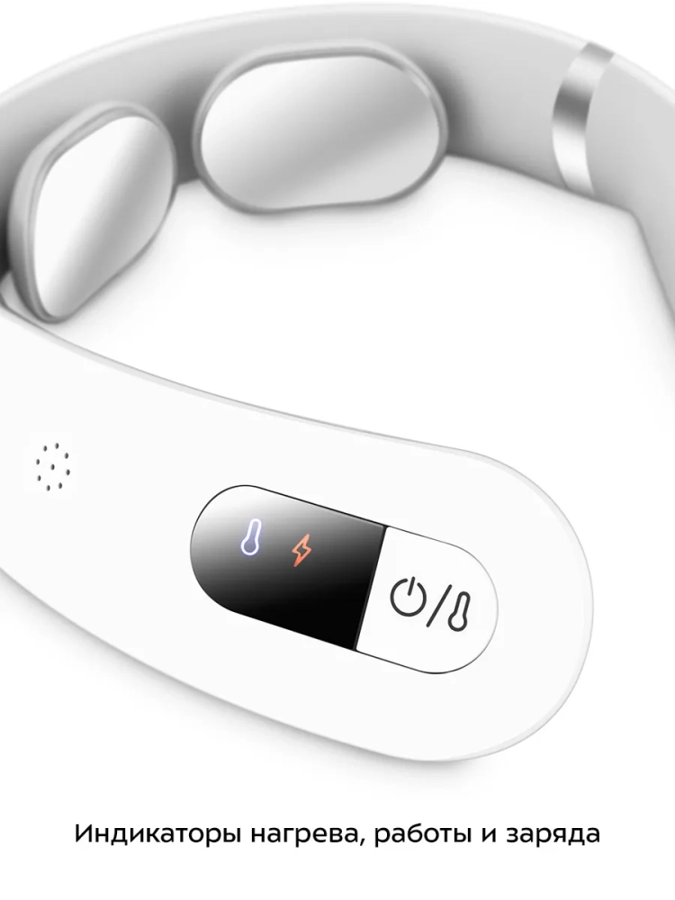 Массажер оснащен голосовым сопровождением — при нажатии на кнопку «Вкл/Выкл» и «Режим», низком уровне заряда аккумулятора и отключении массажер подает звуковые команды, сообщая о выбранном режиме, установленной интенсивности воздействия и уровне нагрева.