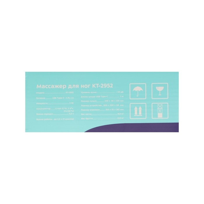 Массажёр для ног Kitfort КТ-2952, электрический, 5 Вт, 4 режима, АКБ, серый