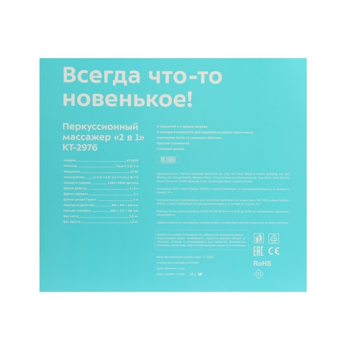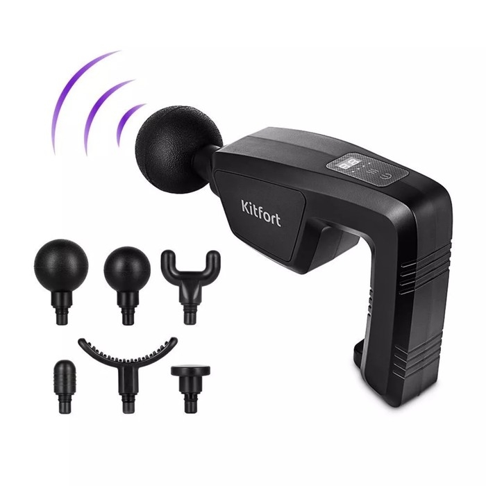 Массажёр для тела Kitfort КТ-2976, электрический, перкуссионный, 24 Вт, 6 насадок, чёрный