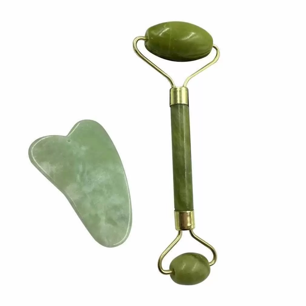 Набор для массажа предназначен для устранения отечности лица и избавления от мимических морщин. Снимает мышечное напряжение, делает вашу кожу более упругой и сияющей. Массажный косметический набор, в комплект которого входит роллер из камня с двумя видами насадок и скребок Гуаша помогут смоделировать желаемый овал лица, разгладить заломы и морщинки, уменьшить отеки, улучшить сон за счет расслабления мышц лица и шеи. Для проведения процедуры подойдет любая массажная или косметика по уходу для лица и тела с легкой текстурой. Изделие выполнено из натурального нефрита.