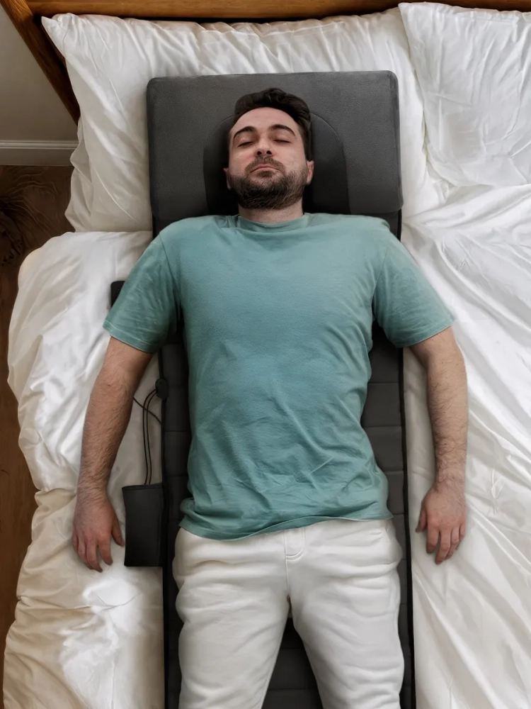 Встроенные в матрас вибрационные подушки позволяют провести вибрационный массаж, который подойдет для расслабления тела и снятия напряжения мышц. Массажные ролики воздействуют на мышцы, усиливая циркуляцию крови, а также они снимают напряжение, усталость и болевые ощущения в шее. Благодаря нагреву эффективность массажа повышается, и достигается лучшее расслабление мышц.