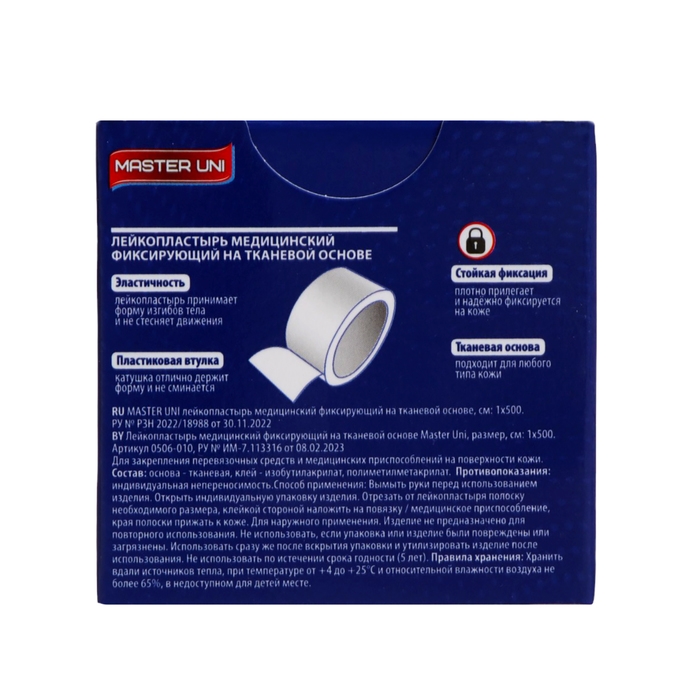ЛЕЙКОПЛАСТЫРЬ MASTER UNI МЕДИЦИНСКИЙ ФИКСИРУЮЩИЙ НА НЕТКАНОЙ ОСНОВЕ - удобная упаковка в виде пластиковой втулки.