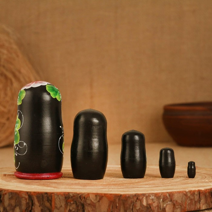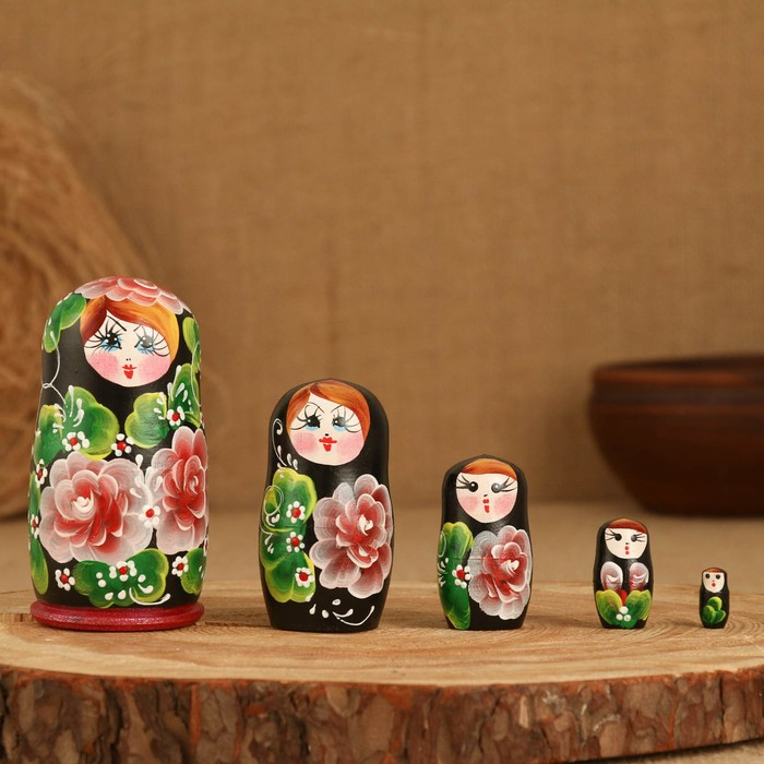 Матрёшка «Земляничка», чёрный платок, 5 кукольная, 18 см