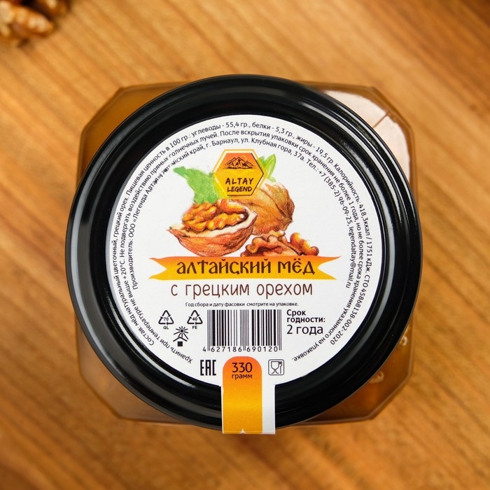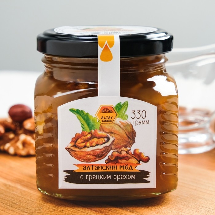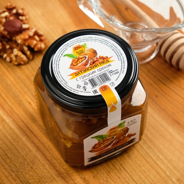 Мёд Алтайский натуральный цветочный, с грецким орехом, 330 г