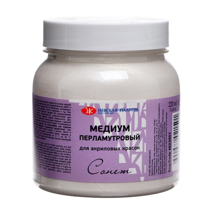 Медиум для акриловых красок 220 мл, ЗХК "Сонет", перламутровый, 4623957
