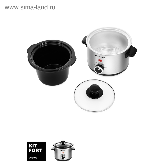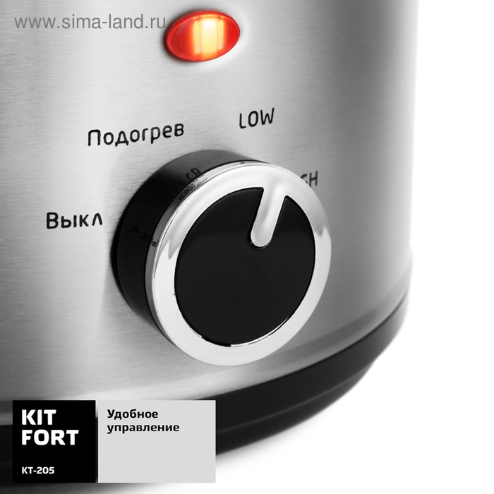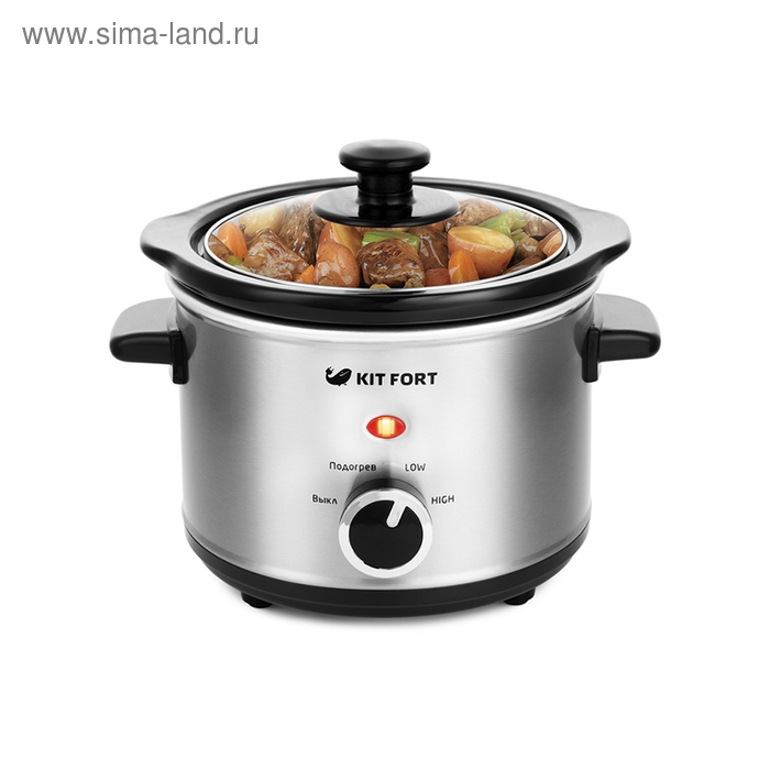 Медленноварка Kitfort KT-205, 120 Вт, 1.5 л, 3 режима, серебристая