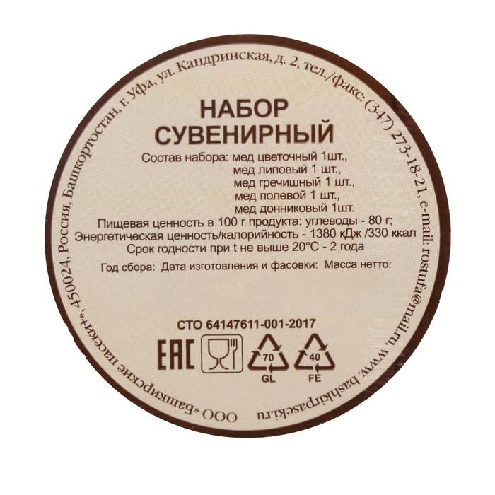 Медовый набор: липовый, цветочный, гречишный, донниковый, полевой, 200 г