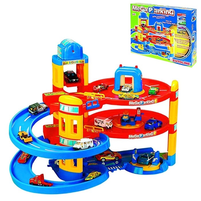 На первом уровне ребёнок найдёт заправочную станцию. Второй этаж оборудован платформой для техосмотра, третий — мойкой с чистящими валиками. Попасть на крышу можно двумя способами: заехать по спиральной дороге или подняться на лифте. После игры комплекс легко разбирается и помещается в коробку.