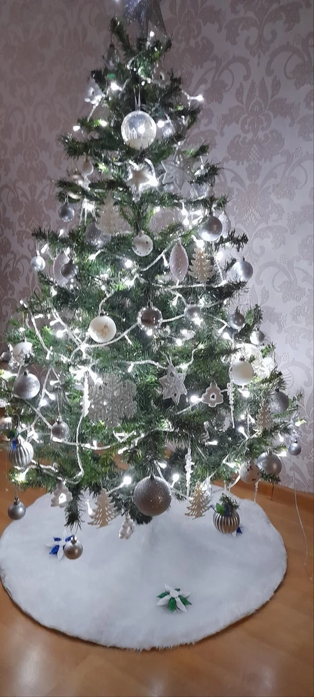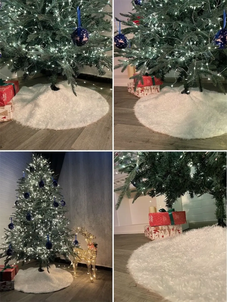 Меховой коврик под елку пушистый диаметром 120 см – это идеальное дополнение к вашему новогоднему убранству. Коврик-юбка под елку создан для оформления пространства под елкой. Он скроет подставку, которая не всегда выглядит эстетично, и создаст впечатление, будто елочка стоит в пушистом сугробе. Белый коврик имитирует снежный покров. На него можно поставить подарки. Коврик легко и надежно фиксируется с помощью липучек. Ковер для елки лучшее украшение на Новый Год, которое подарит Вам новогоднее настроение. Меховой коврик под елку – это не просто украшение, а элемент, который придаст вашему празднику особую теплоту и комфорт.