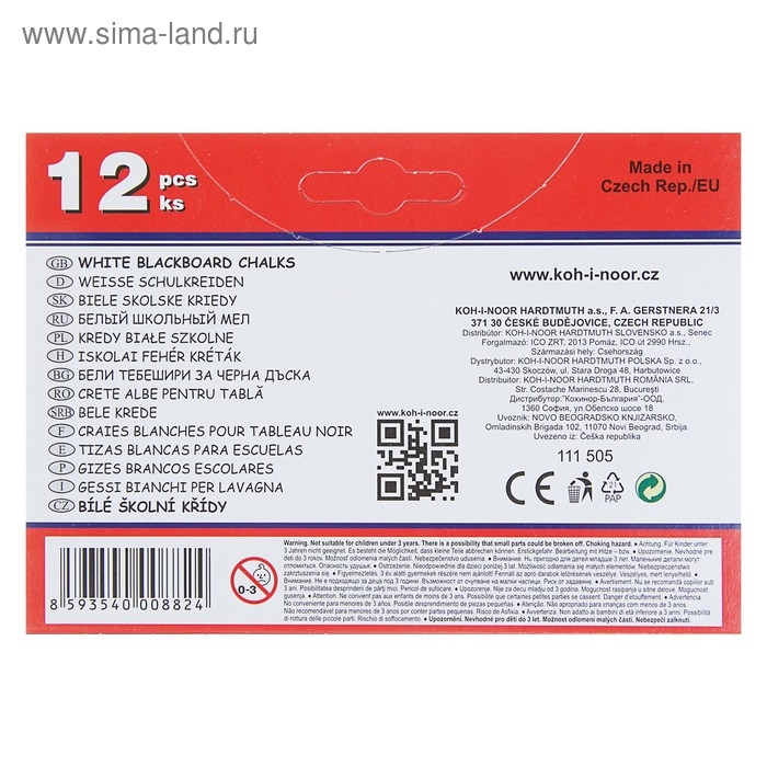 Мелки белые Koh-I-Noor, в наборе 12 штук, квадратные