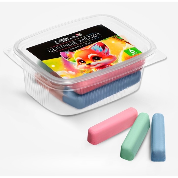 Мелки цветные для асфальта 6 штук Calligrata TOP, брусок, МИКС