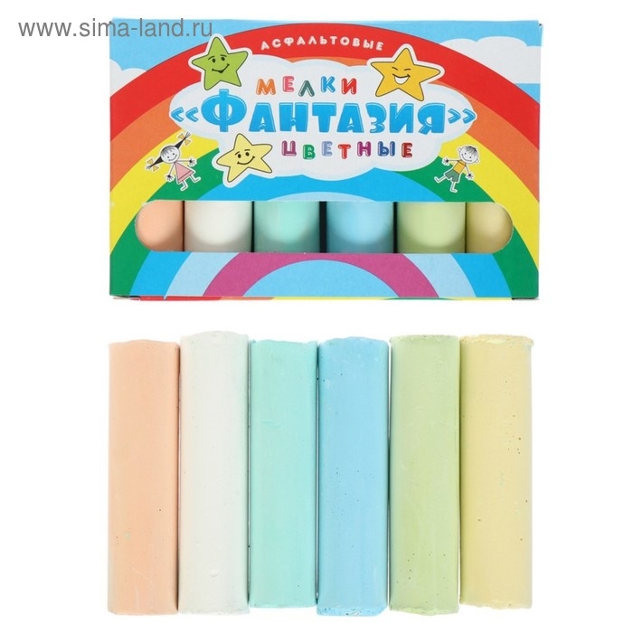 Мелки цветные для асфальта 6 штук "Фантазия", цилиндр