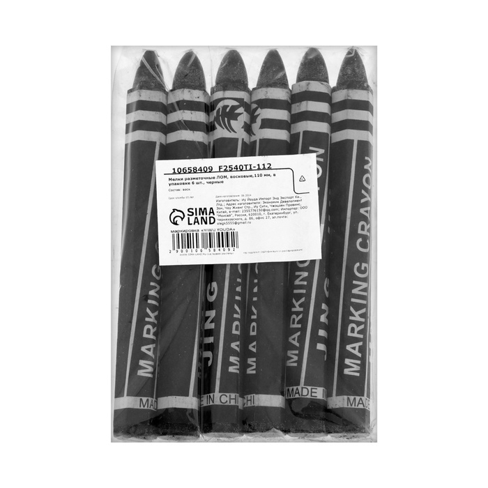 Мелки разметочные ЛОМ, восковые,110 мм, в упаковке 6 шт., черные