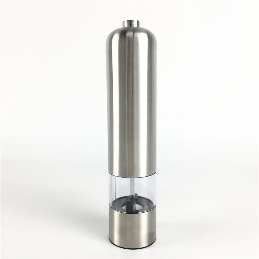 Электрическая мельница для специй из нержавеющей стали. Стильный дизайн мельницы подойдет к любому интерьеру, а небольшой размер позволит хранить ее в любом удобном для вас месте. Электрический измельчитель заменит Вам традиционные солонки и перечницы и позволит перемолоть любые специи без применения физической силы - просто нажав кнопку. Герметичность: поставляется с крышкой, которая поможет сохранить вашу столешницу чистой. Просто нажмите кнопку. Измельчите соль и перец, чтобы получить свежие приправы, и используйте их поверх необходимых ингредиентов.