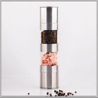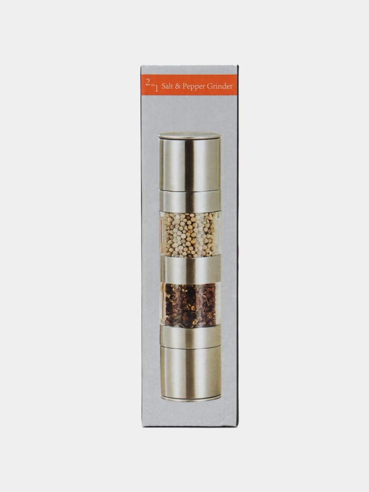 Полезный аксессуар для специй - механическая мельница для перца и соли с двумя отсеками и регулировкой помола. Ручная мельница для специй всегда под рукой и готова к работе. Мельница механическая не требует зарядки или смены батарейки. Перцемолка на обеденном столе заменит солонку и перечницу. Двусторонняя мельница 2в1 экономит место на кухне, а лаконичный дизайн украсит интерьер кухни. Сделанный из нержавеющей стали и прозрачного органического стекла. Корпус многоразовой мельницы для перца – гарантия износостойкости и долговечности. Керамические жернова измельчителя не ржавеют и не тупятся при использовании. Винт регулировки двойной мельницы позволит настроить помол для любимых приправ и специй. Мельница для соли не боится воды, легко отмывается и сохраняет внешний вид. А чтобы место хранения посуды для соли и перца оставалось чистым, наша универсальная перцемолка и солонка оснащена крышечками с двух сторон. Преимущества двухсторонней мельницы для специй: простая в использовании, неприхотливая в уходе, удобная в хранении, всегда ароматные свежемолотые специи. Все мельницы проходят двухэтапную проверку на брак – производителем и отделом контроля качества продавца.