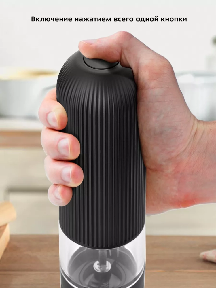 Автоматическая мельница имеет простое управление всего одной кнопкой. Поместите устройство над блюдом и нажмите на кнопку, чтобы получить быстрый помол, не прикладывая никаких усилий.