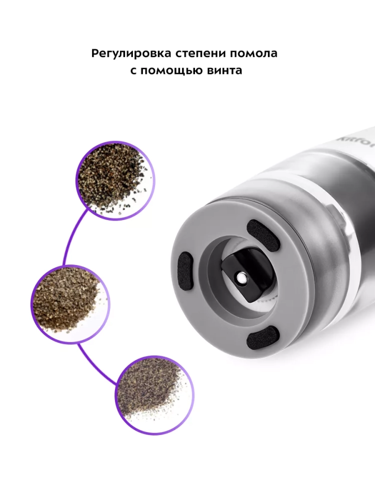 Автоматическая мельница имеет простое управление всего одной кнопкой. Поместите устройство над блюдом и нажмите на кнопку, чтобы получить быстрый помол, не прикладывая никаких усилий.