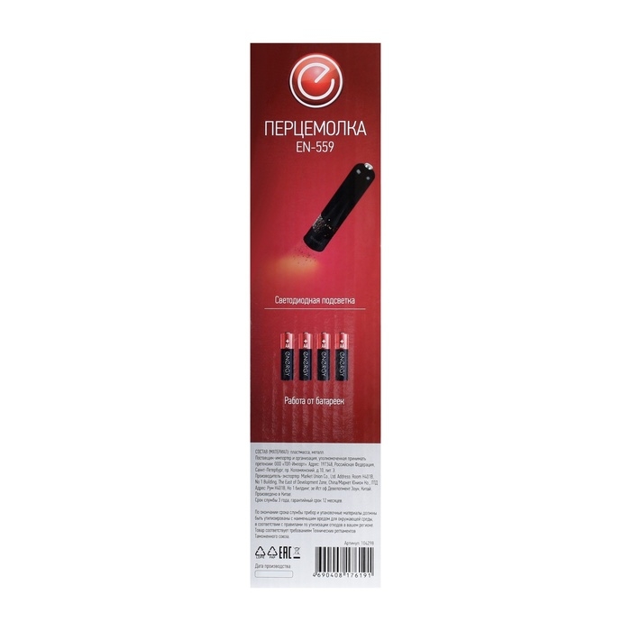 Мельница электрическая ENERGY EN-559, автоматическая, пластик, 4хАА, чёрная