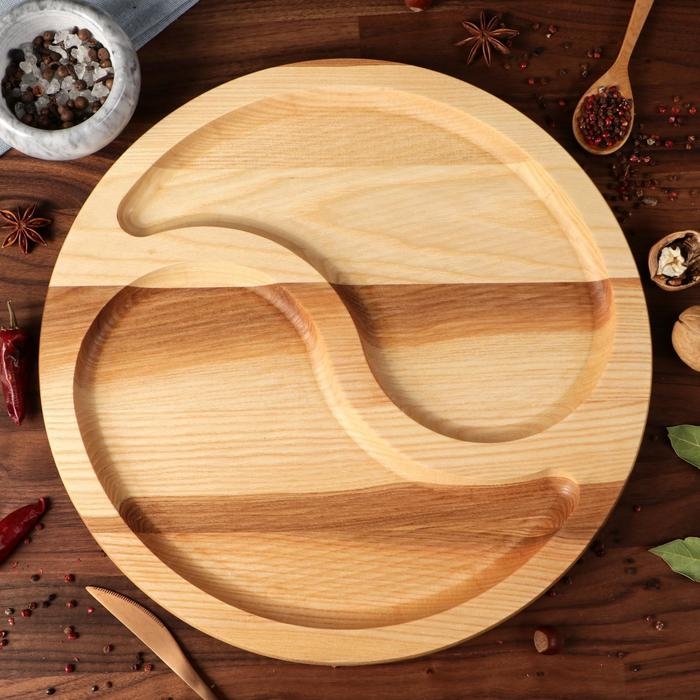 Менажница деревянная "Инь-Янь", с разделочной доской, d-35 см, массив ясеня