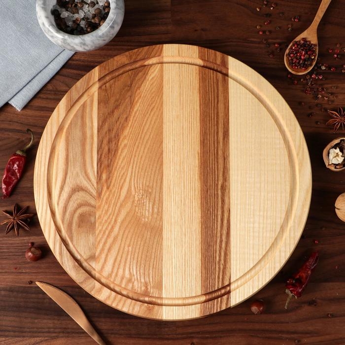 Менажница деревянная "Славянская", с разделочной доской, d-30 см, массив ясеня