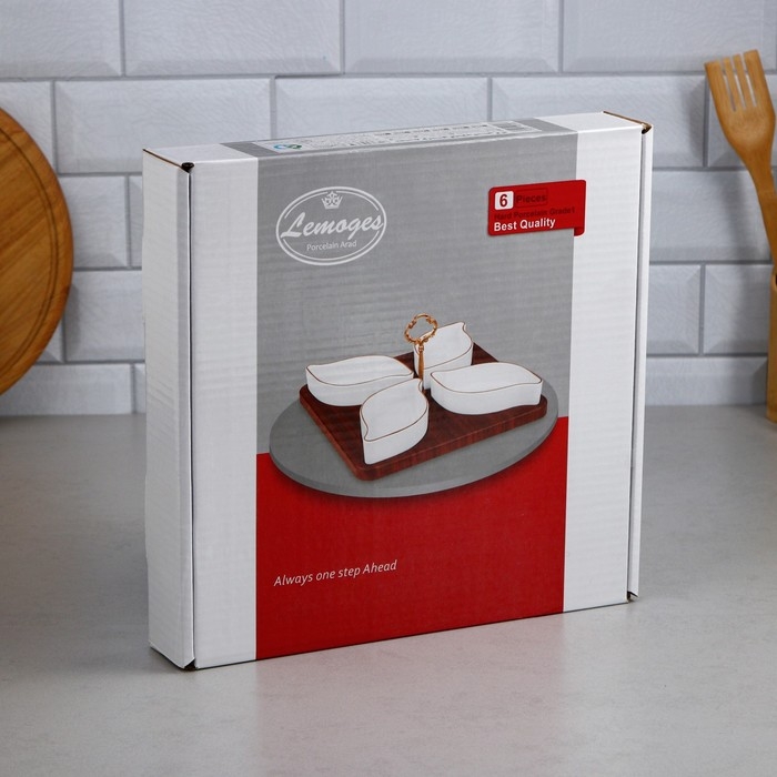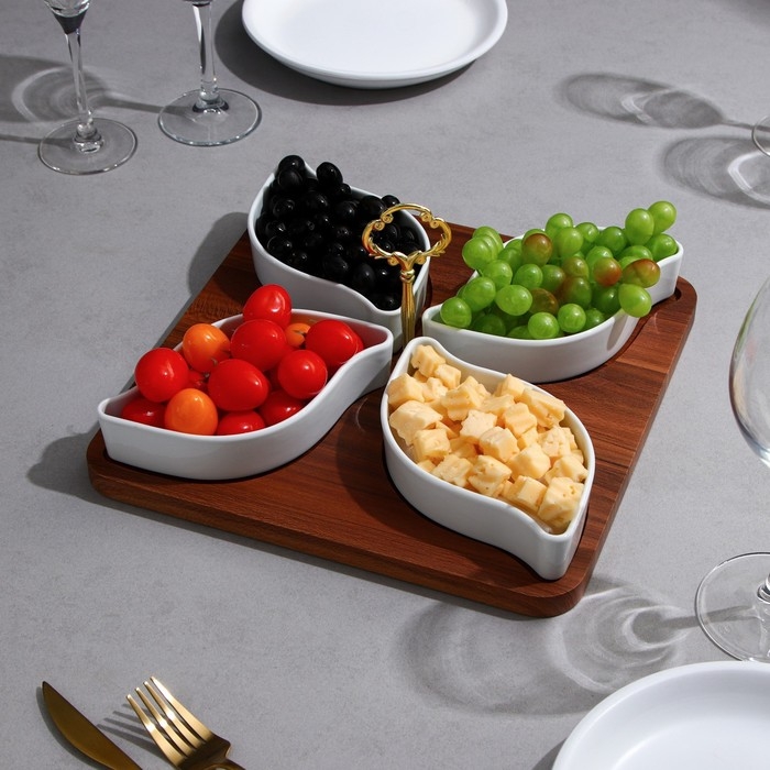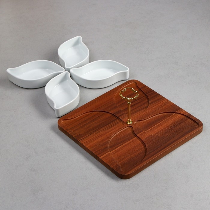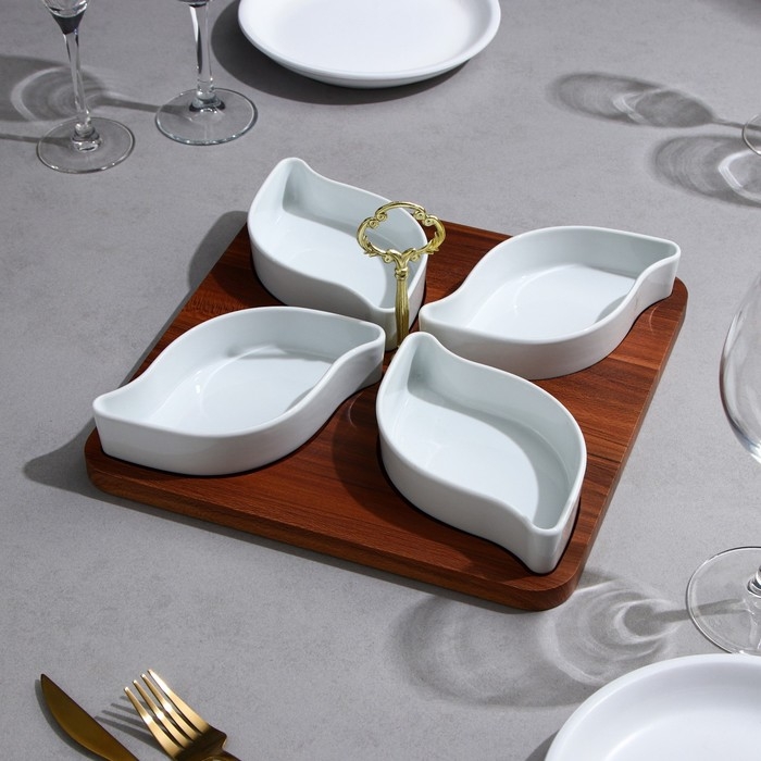 Менажница «Королевская сервировка», 4 шт:300 мл, деревянное основание, фарфор, Иран