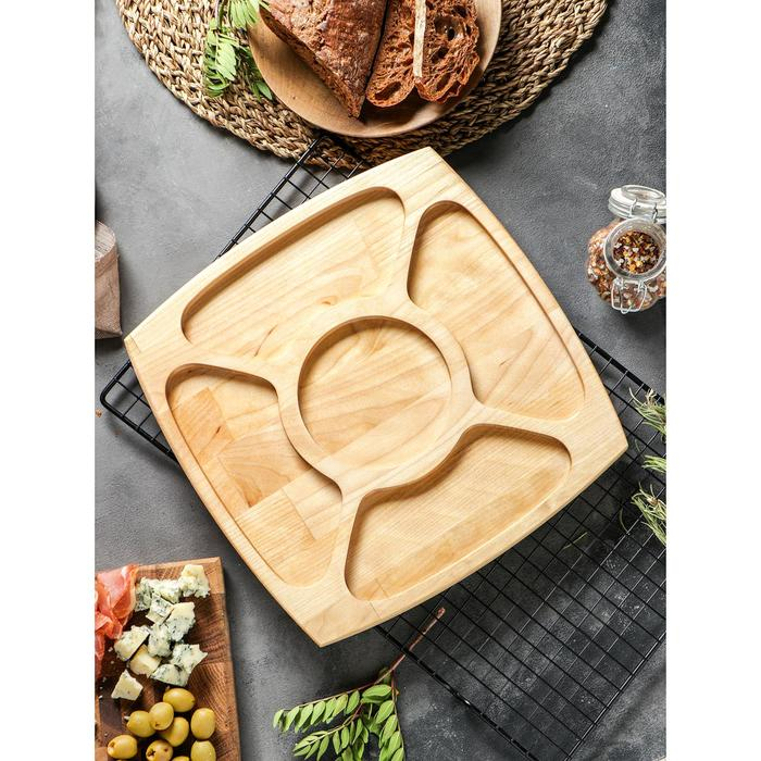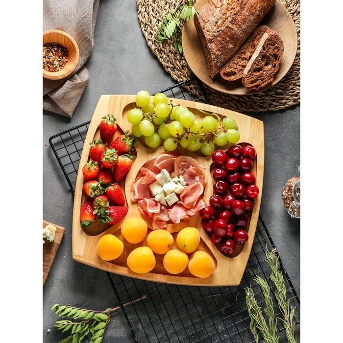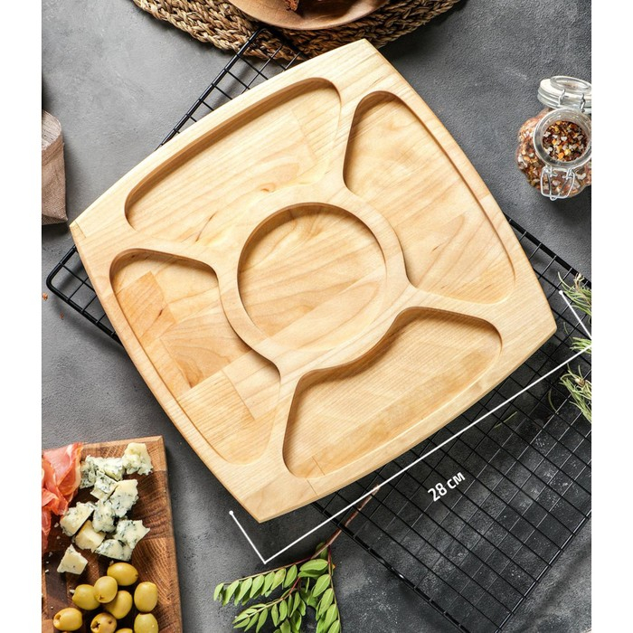 Менажница квадратная Доляна, 28×28×1,8 см, 5 секций, берёза