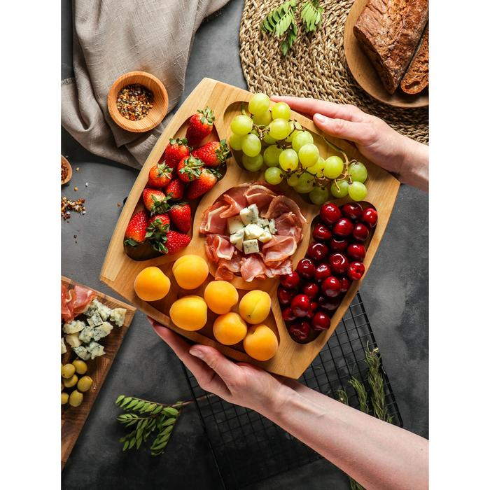 Никак не можете отучить себя от вредных перекусов? Изящная менажница из натурального дерева не даст вам пройти мимо орешков и сухофруктов. Изделие станет стильным и уютным элементом вашей кухни и незаменимым аксессуаром для сервировки стола.
