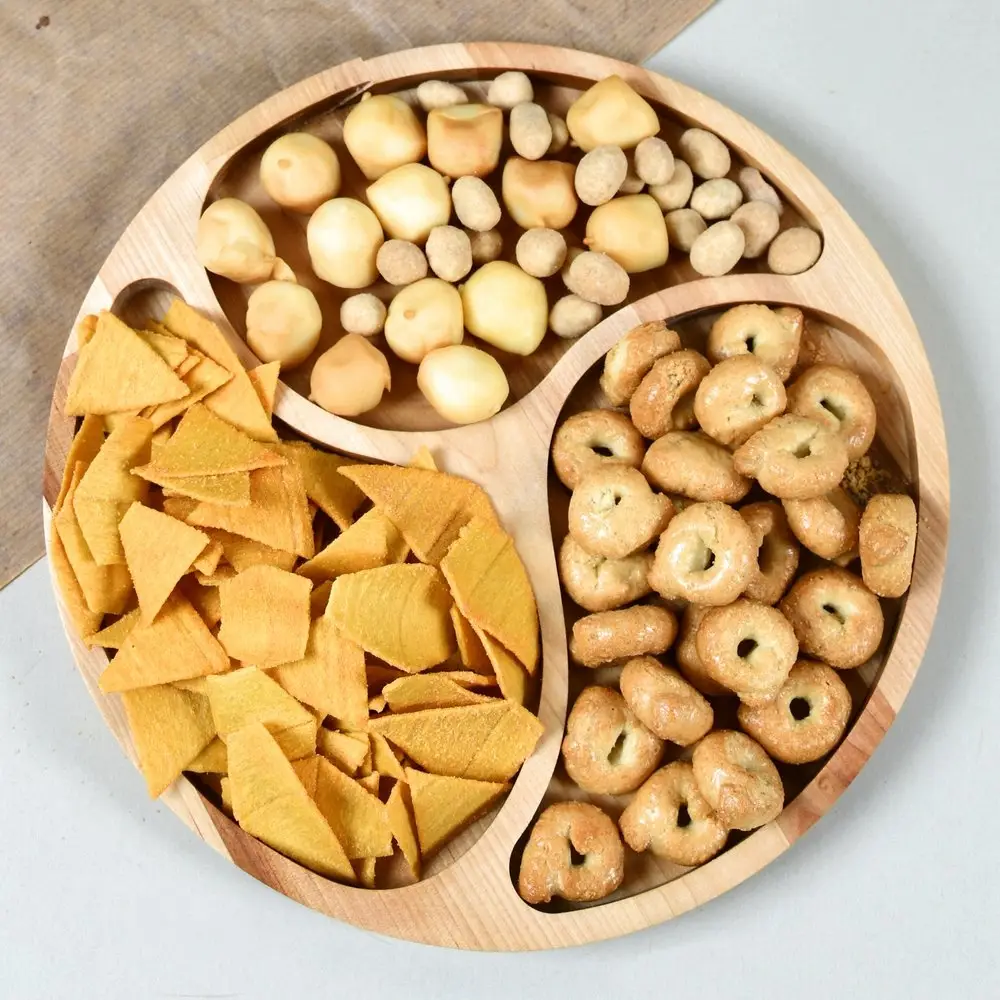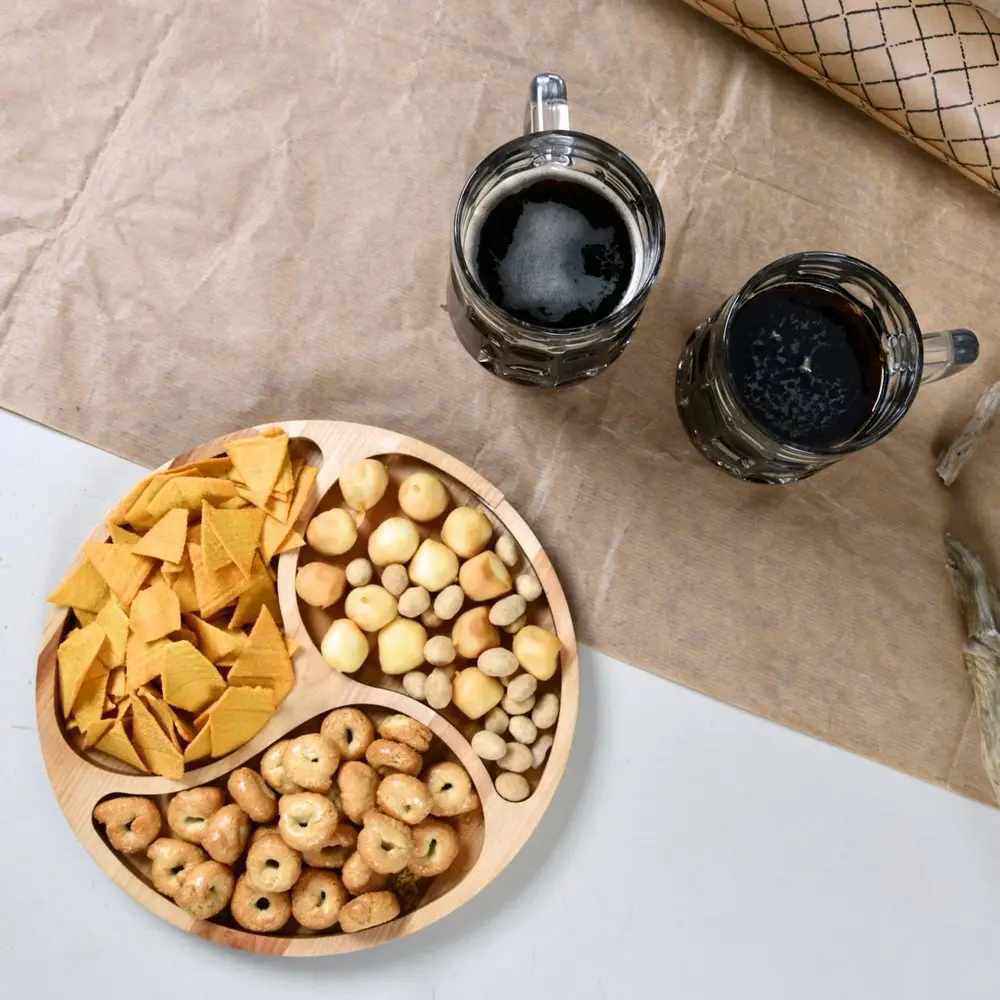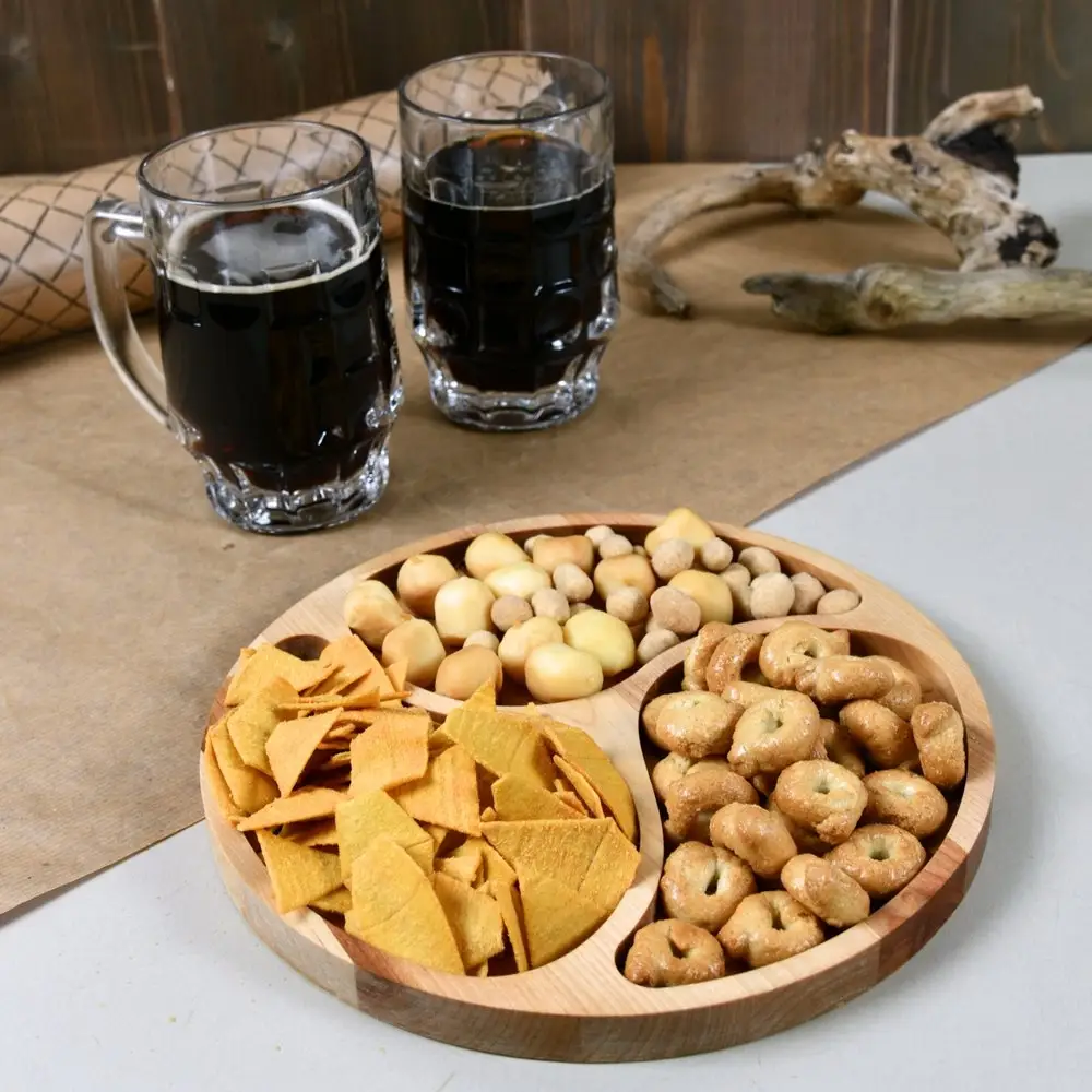 Менажница предназначена для подачи закусок, снеков, чипсов, орехов, сухофруктов, сыра, конфет, фруктов и т. п. Также подойдёт для отдыха на природе и пикника. Деревянная красивая тарелка сделает подачу блюд приятнее в разы, а также приготовление еды станет ещё более удобным и приятным. Менажница поможет создать красивую сервировку стола и подать блюда с оригинальным декором,