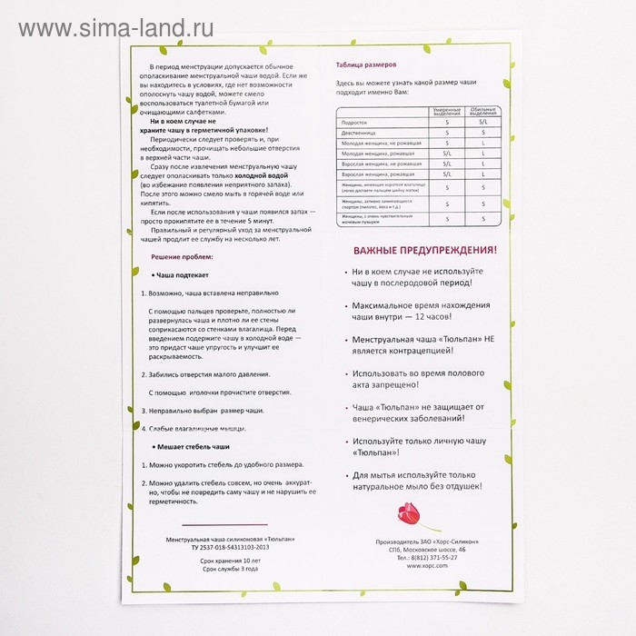 Силиконовая менструальная чаша Тюльпан - средство гигиены, которое сделает Вашу жизнь проще. Менструальная чаша Тюльпан- это инновация, которая позволяет не думать о месячных даже в самые ответственные дни. Состав ее гипоаллергенный медицинский силикон качественный и безопасный. Силиконовая чашечка собирает внутрь себя все выделения в течение всего дня. Установите капу утром и только вечером опустошите ее. Спорт, отпуск, бассейн доступны в течение любого времени. Срок годности чаши не ограничен. Это позволит Вам не тратиться на другие средства гигиены- менее экологичные.