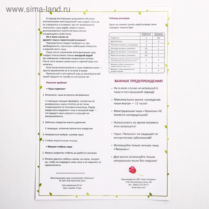 Силиконовая менструальная чаша Тюльпан - средство гигиены, которое сделает Вашу жизнь проще. Менструальная чаша Тюльпан- это инновация, которая позволяет не думать о месячных даже в самые ответственные дни. Состав ее гипоаллергенный медицинский силикон качественный и безопасный. Силиконовая чашечка собирает внутрь себя все выделения в течение всего дня. Установите капу утром и только вечером опустошите ее. Спорт, отпуск, бассейн доступны в течение любого времени. Срок годности чаши не ограничен. Это позволит Вам не тратиться на другие средства гигиены- менее экологичные.