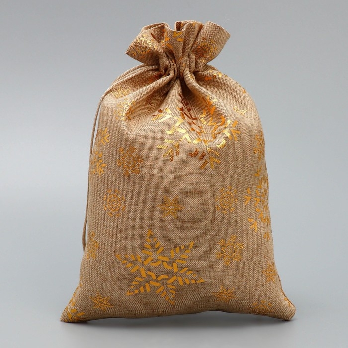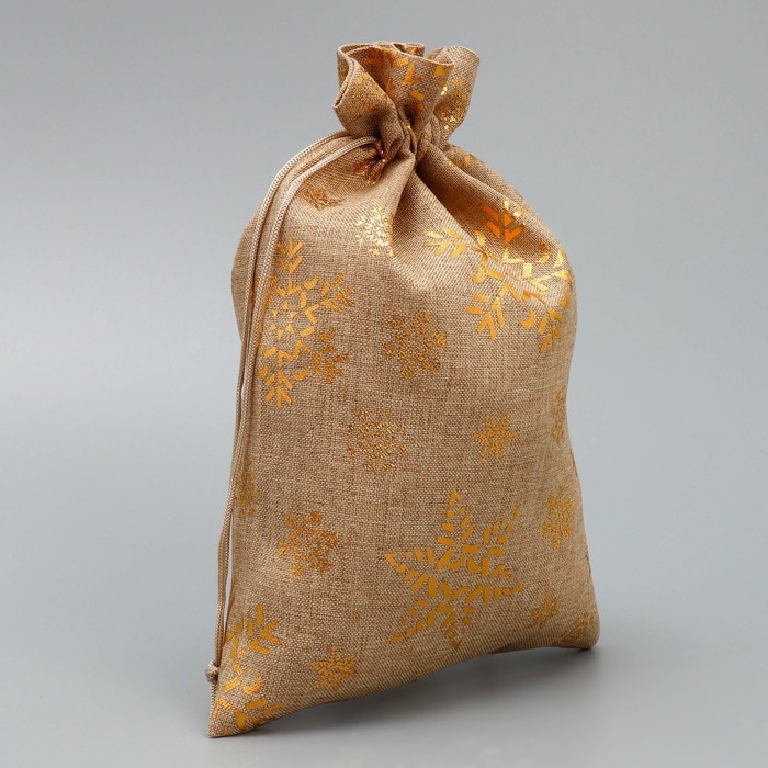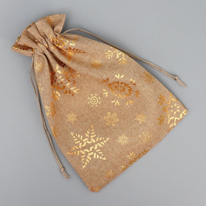 Мешочек подарочный холща «Новогодние снежинки», тиснение, 16 х 24 см +/- 1.5 см, Новый год