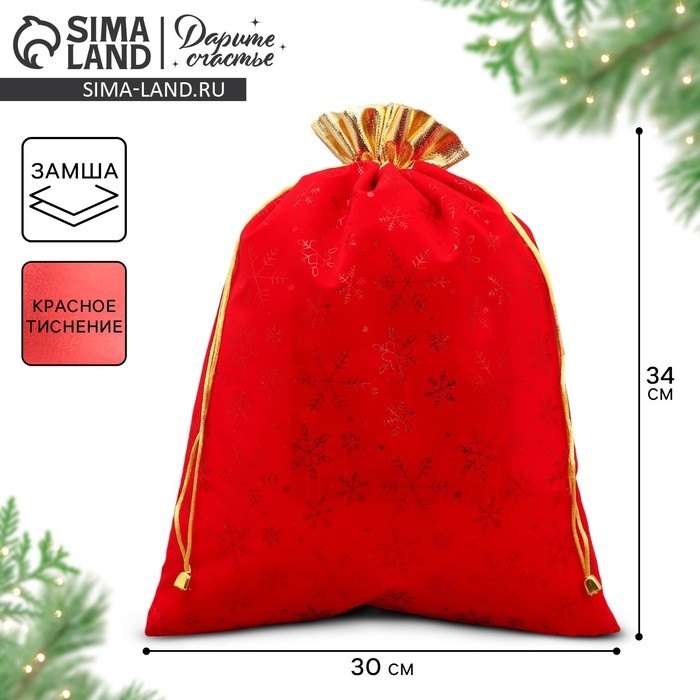 Мешочек подарочный замша «Новогоднее чудо», снежинки, тиснение, 30 х 40 см +/- 1.5 см, Новый год