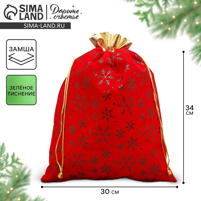 Мешочек подарочный замша «Подарочки», снежинки, тиснение, 30 х 40 см +/- 1.5 см, Новый год
