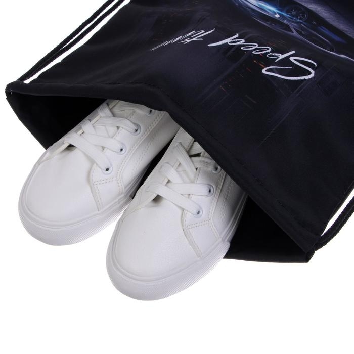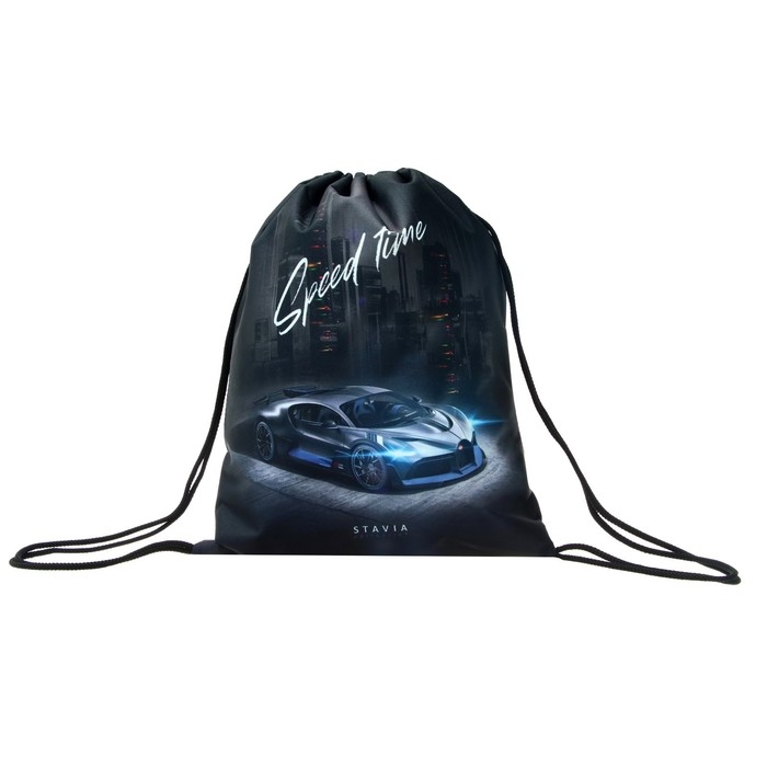 Мешок для обуви 430 х 340 мм, Stavia (плотность 600D с водоотталкивающей ПУ-пропиткой) "Машина", чёрный/голубой