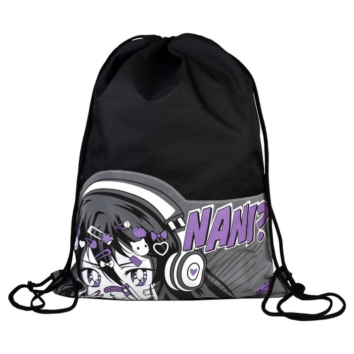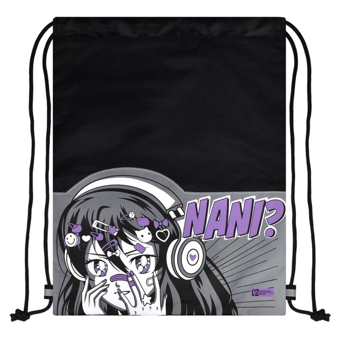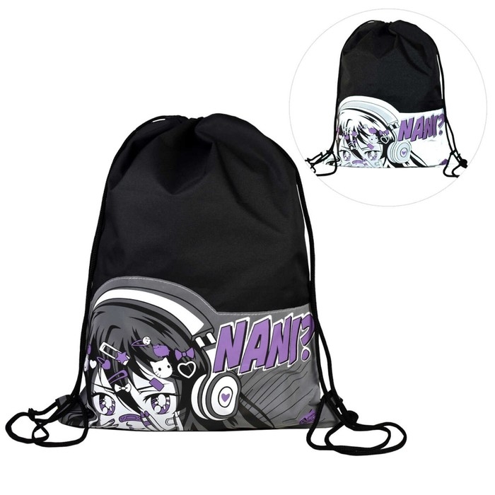 Мешок для сменной обуви. МАНГА. Размер: 36х48 см. Материал: полиэстер. Количество отделений - 1. Застёжка - шнурок. Отделка: аппликация из светоотражающей ткани, шелкография. Особенности: водоотталкивающая ткань. Подклада: нет. Пол: для девочек. Индивидуальная упаковка: ПЭТ-пакет.